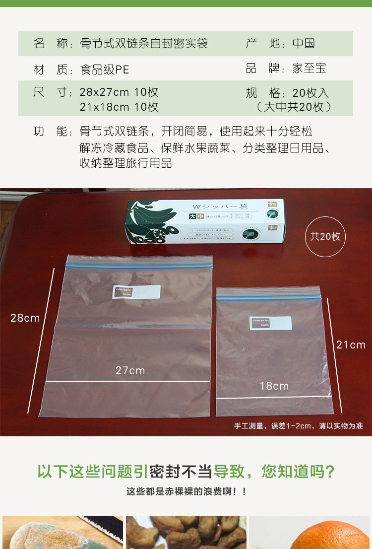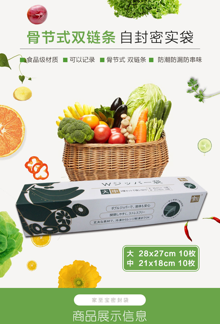 冰箱用品 > 冰箱收納 【家至寶】雙鏈條骨節(jié)式自封袋