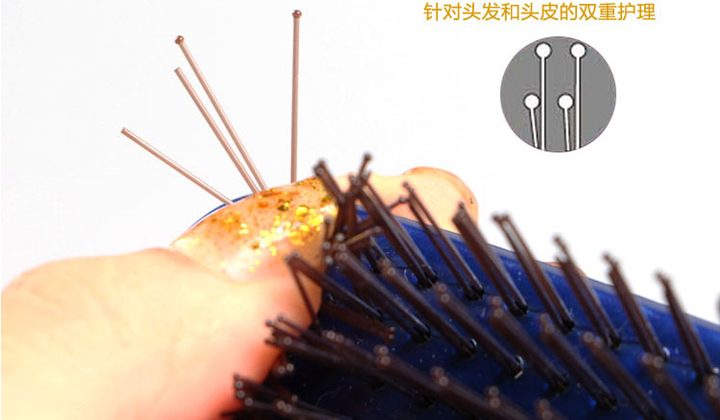 4、梳齒末端獨(dú)特小圓頭設(shè)計,不傷頭皮,促進(jìn)頭部皮層血液循環(huán),暢通經(jīng)脈。